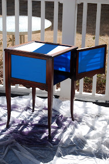 Today was day two of really working hard on some of our living room furniture. To be honest, I will definitely be taking a big project break for a couple days. I think it's funny that my right arm is hurting from sanding, painting, and glazing so much.